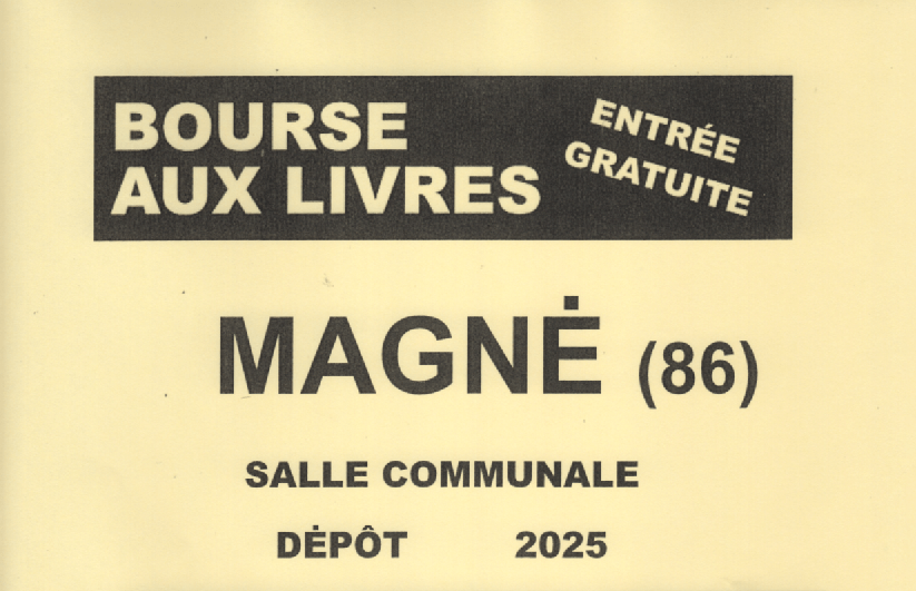 La Bourse aux livres organisée par Magné Patrimoine se tiendra de vendredi 24 octobre à dimanche 26 octobre à la salle communale. Entrée gratuite.
