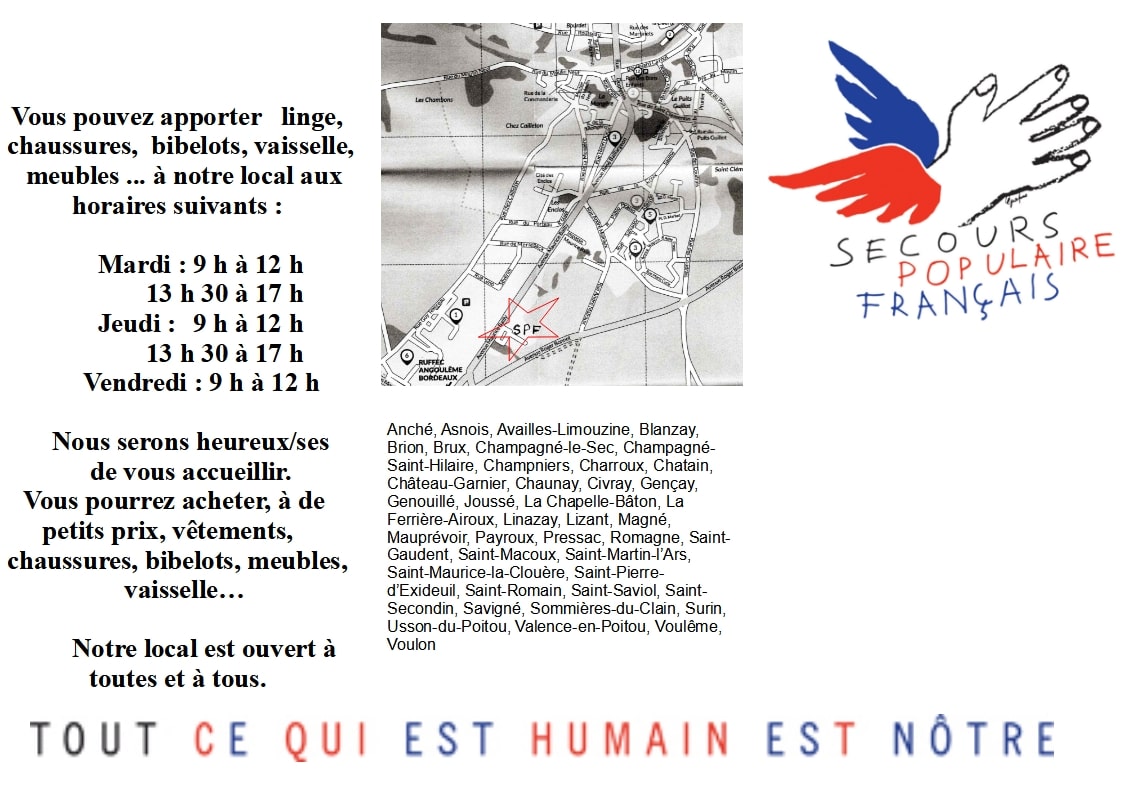 Vous trouverez ici la nouvelle plaquette d’information sur les différentes actions du Comité local de Civray du Secours Populaire ainsi que les communes concernées.