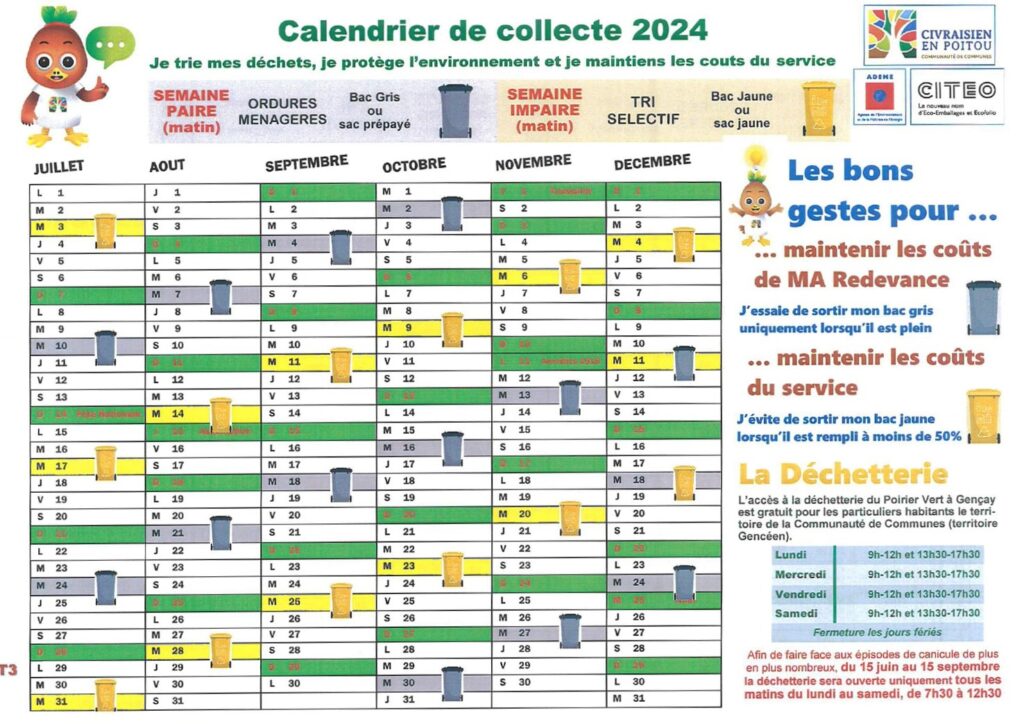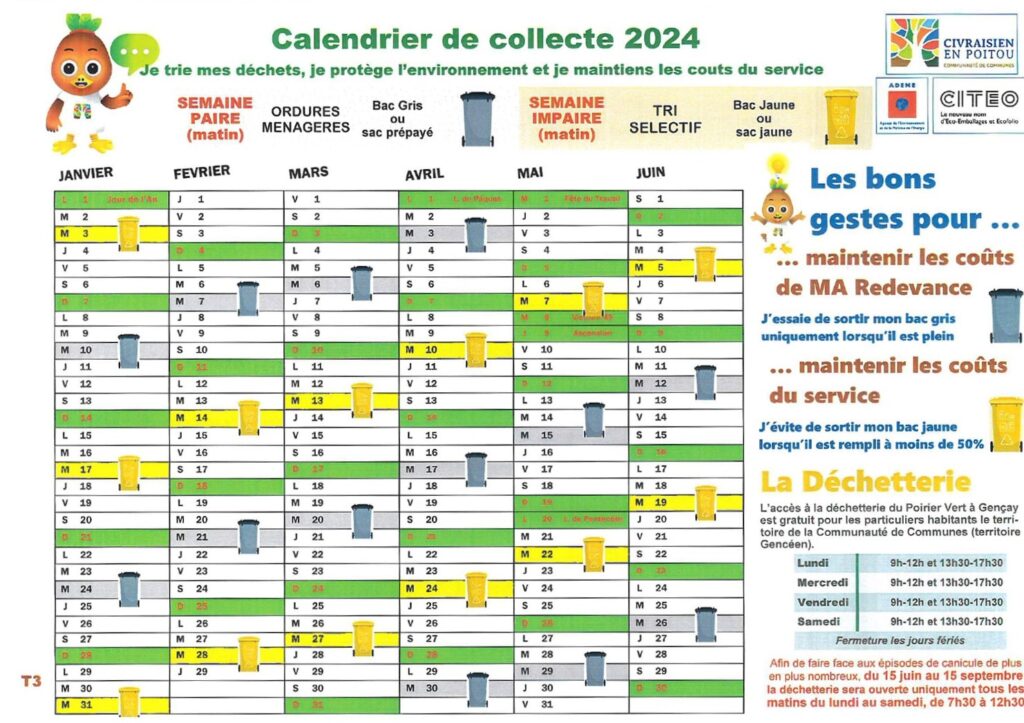 Calendrier de collecte des ordures ménagères pour l’année 2024